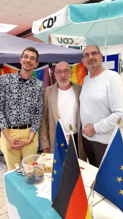Am Stand der CDU gab es viele Gespräche über die Demokratie. Beim Demokratie-Quiz mit 60 Teilnehmenden gewannen Tom S. und Matthes W. je einen Restaurantgutschein (Da Massimo), Armine K. das Spiel Hitster und Mahanjot das Spiel Just one. Die Gewinner werden benachrichtigt.